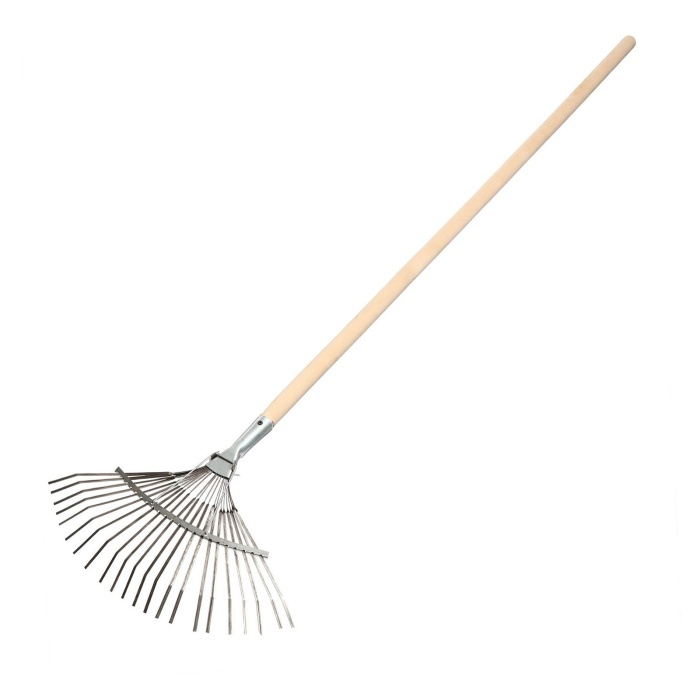Веерные грабли – довольно популярный садовый инвентарь. ... *Проволочные грабли более жёсткие, их зубья состоят из толстой проволоки, а концы загнуты под прямым углом. Это помогает при уборке мусора не повредить уже проросшие растения.