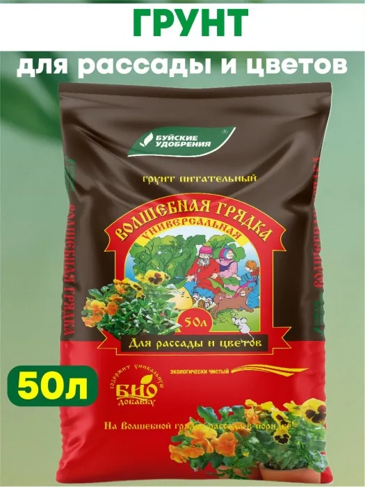 Грунт Волшебная грядка для выращивания рассады овощных и цветочных культур, декоративных горшечных растений и выгонки зеленных культур. Приготовлен на основе нейтрализованного верхового торфа с добавлением в сбалансированном соотношении необходимых макро- и микроэлементов. Специализированные грунты для выращивания цветов и рассады, овощных и декоративных культур. Содержат сбалансированный состав по макро- и микроэлементам. Оптимальные агрофизические свойства создают прекрасные условия для развития растений.Преимущества:Полностью готов к применениюСодержит комплекс питательных элементовУсиливает цветение и завязывание плодовПовышает приживаемость и декоративность растенийУвеличивает сопротивляемость неблагоприятным условиям среды, болезням. Состав:N (мг/л): 100P2O5 (мг/л): 50K2O (мг/л): 200MgO (мг/л): 30Микроэлементы: мг/кг: Zn – 0.2-0.3; Fe – 0.8-2.0; Cu – 3.0-5.0; Mo – 0.1-0.4; B – 0.4-1.6; Mn – 8.0-40.0. Показатель pH - 5.5-6.5. Назначение: грунт для выращивания рассады овощных и цветочных культур, декоративных горшечных растений и выгонки зеленных культур. Приготовлен на основе нейтрализованного верхового торфа с добавлением в сбалансированном соотношении необходимых макро- и микроэлементов.