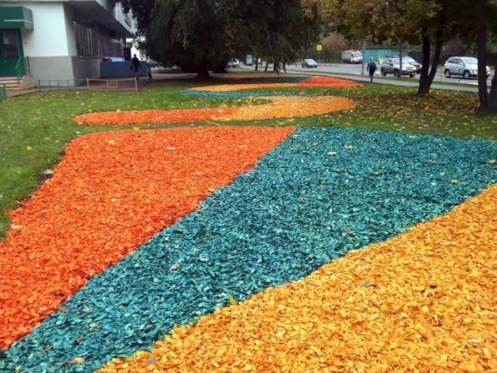 Декоративная щепа может быть натуральной или окрашенной, представлена в различных цветах и фракциях. Выбор зависит от задач и дизайна участка.