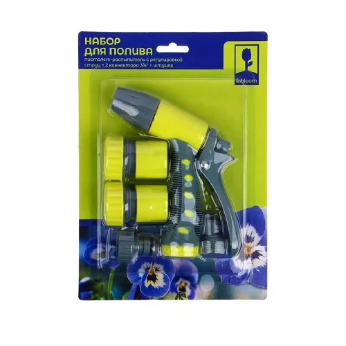 Набор для полива INBLOOM пистолет-распылитель + 2 коннектора 3/4 + штуцер пластик 167-041 предназначен для садовых работ.