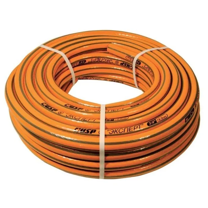“ГАРДЕН ПЛЮС”. Трехслойный шланг, армированный полиамидной нитью, изготовлен из ПВХ с применением добавок, увеличивающих долговечность шланга. 3/4"x40 м. Толщина стенки 2,3-2,4мм.