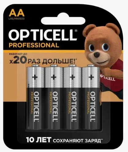 Батарейка щелочная Opticell Professional подходит для совместного использования с аудио и видеотехникой, электронными устройствами, бытовыми приборами, радиоуправляемыми игрушками, фонарями и пультами ДУ. Щелочной элемент питания состоит из марганца и цинка. В качестве электролита, в котором протекает реакция, используется гидроксид калия. Батарейка обеспечивает стабильную подачу энергии, возможность использования в условиях низкой температуры и стойкость к саморазряду. В комплекте Opticell Professional поставляются 4 батарейки форм-фактора АА с напряжением 1.5 В.