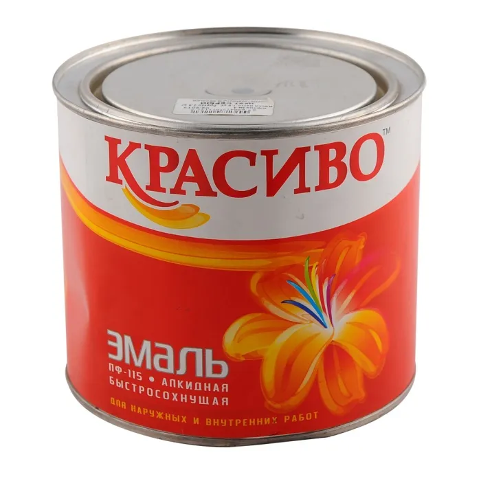 Эмаль ПФ-115 «Красиво» предназначена для окрашивания металлических, деревянных, кирпичных, гипсовых, бетонных и прочих поверхностей (за исключением полов), эксплуатируемых в атмосферных условиях и внутри помещений. Образуемое эмалью ПФ-115 «Красиво» покрытие обладает мягким блеском, твердостью, устойчиво к кратковременному воздействию воды и растворам бытовых моющих средств. Время высыхания «на отлип» составляет 6 часов. Полное высыхание – не более 20 часов при температуре +20 °С.
