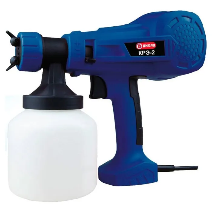 Электрический краскораспылитель ДИОЛД КРЭ-2 10131030 подходит для бытового использования. Уверенно работает с красками, грунтовками, лаками, защищающими древесину средствами. Оснащен удобной рукояткой с резиновой накладкой для надежного удержания при работе.