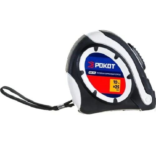Рулетка РОКОТ карманная STATUS автостоп, 10мх25мм 658-012 подходит для измерительных работ любой сложности. Имеется петля для ношения на запястье. Модель обладает прочным корпусом и контрастной лентой.