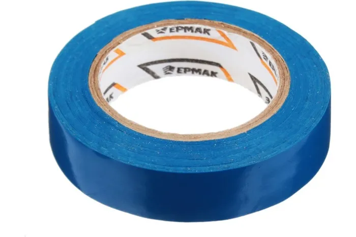 Изолента ЕРМАК ПВХ в/с, синяя, шир. 15+-2 мм, 7,5 м, толщ. 0,2 мм 672-007 используется во время монтажа электросетей, а также при установке нового электрооборудования.