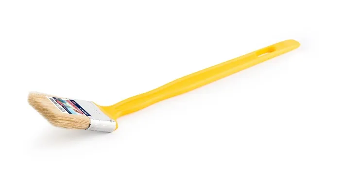 Флейцевые радиаторные кисти «Эксперт», толщина 10-12 мм., светлая натуральная щетина, удлиненная изогнутая желтая пластиковая ручка.