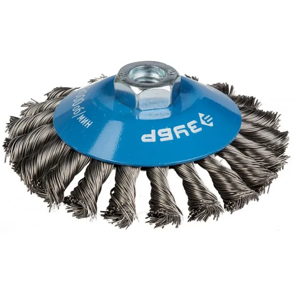 Щетка для УШМ коническая, плетеные пучки стальной проволоки 0,5мм 125мм*М14 ЗУБР
