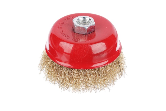 Щетка металлическая  применяется совместно с угловыми шлифовальными машинами. Используется для очистки металлических поверхностей, пазов, выемок от ржавчины и зачистки сварных швов.