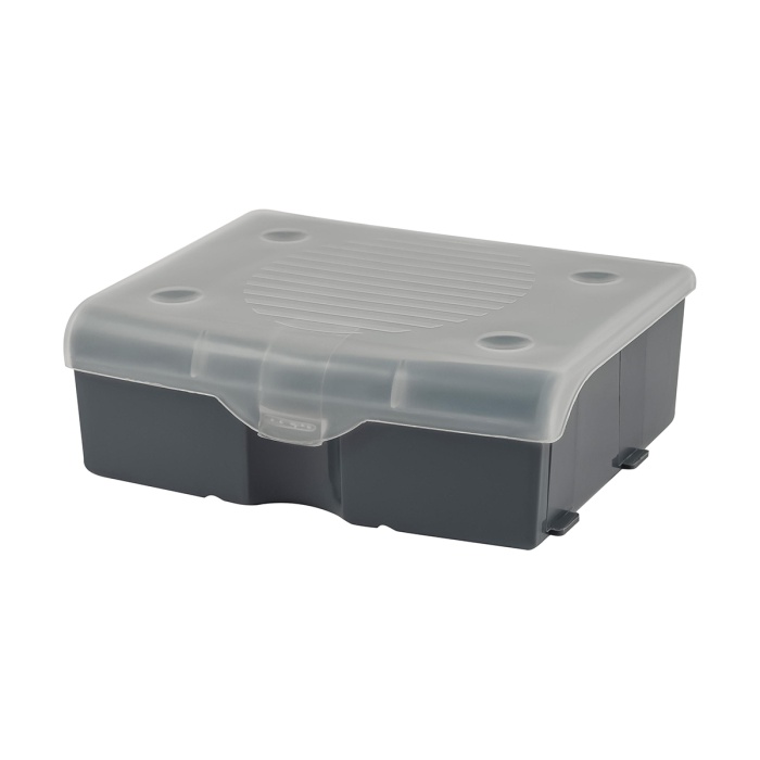 Прозрачная крышка позволяет увидеть содержимое, не открывая органайзер.