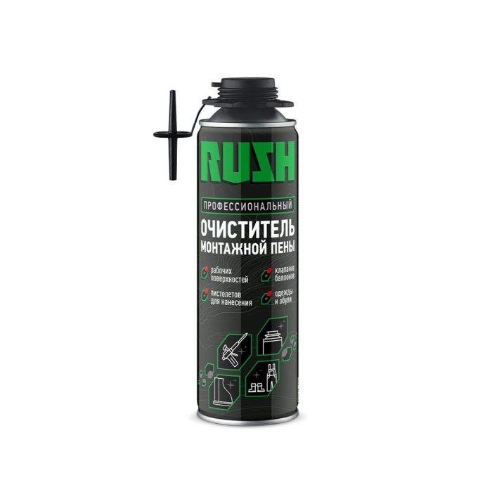 Эффективно очищает внутренние и наружные части пистолетов для монтажной пены, клапаны баллонов, рабочие поверхности, одежду.