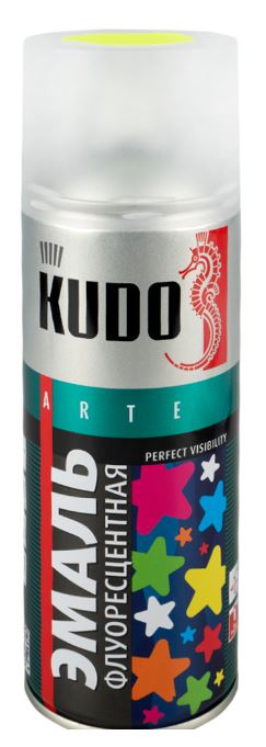 При нанесении специальная эмаль со светоотражающей способностью светится в темноте. Помогает сделать заметными на дороге дорожные знаки или, например, самокаты. Подходит для создания предупредительных и сигнальных эффектов на технике, станках, ступенях, элементах ограждений. Флуоресцентная аэрозольная краска KUDO дает безграничный простор творческой фантазии, поэтому популярна у художников для оформительских работ и декоративного окрашивания. При ультрафиолетовом облучении интенсивность свечения эмали увеличивается.