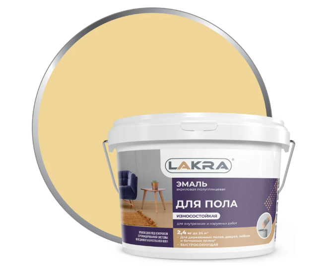 —Краска для пола бетон, дерево быстросохн. 2,4кг бежевая акрил ЛАКРА
