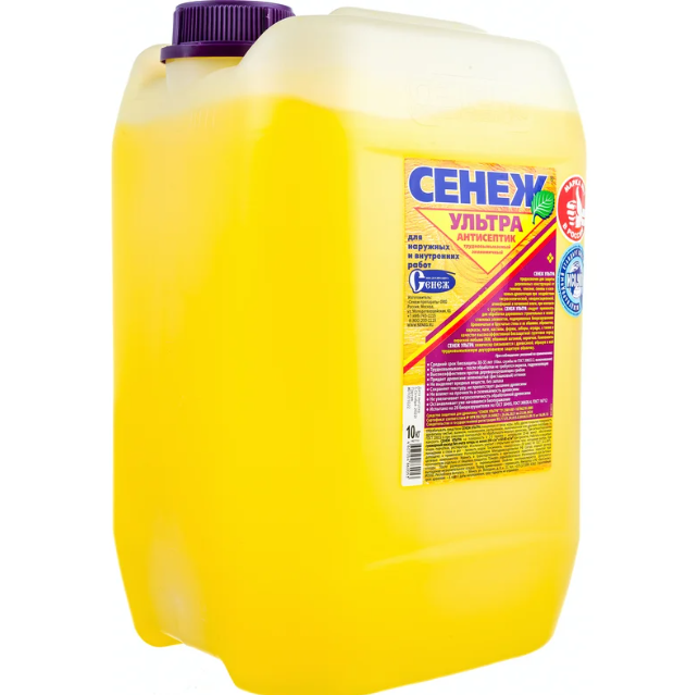 Антисептик для дерева СЕНЕЖ УЛЬТРА 10 кг 52147 предназначен для защиты древесины от гниения, плесени, синевы и насекомых-древоточцев внутри помещений и на открытом воздухе при непосредственном воздействии атмосферных осадков, почвенной влаги, гигроскопическом и конденсационном увлажнении, контакте с грунтом самостоятельно или в качестве биозащитной грунтовки под ЛКМ.
