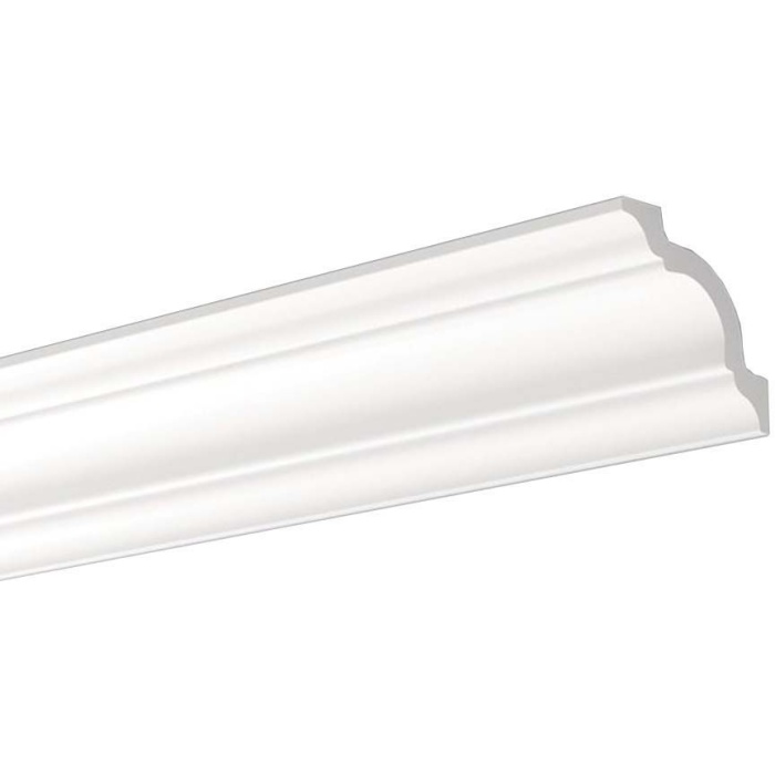 Белый потолочный плинтус бренда NMC из полистирола средней плотности - пенопласта.