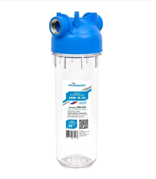 Фильтры серии АБФ-10 от российского производителя Аквабрайт разработаны для эффективной предварительной очистки питьевой воды. В зависимости от выбранного картриджа они хорошо справляются как с растворенными, так и нерастворенными примесями. Все фильтры изготовлены из качественных, прочных и экологичных материалов.