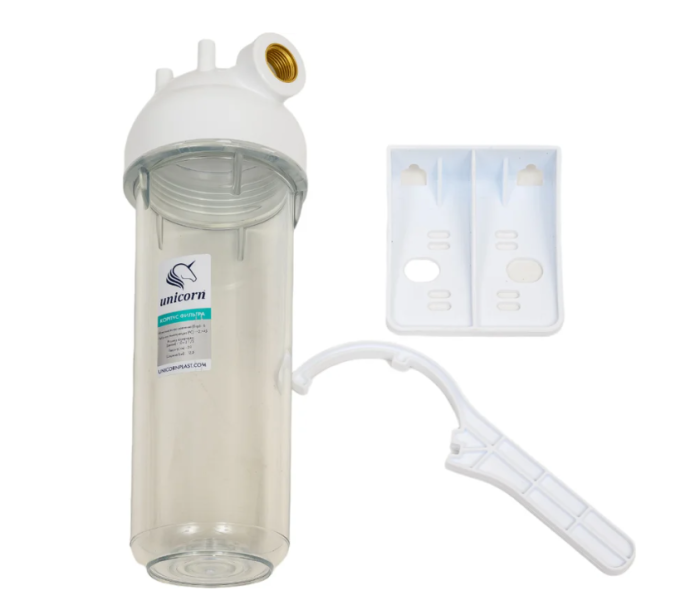 Фильтр магистральный 10" с прозрачным корусом 1/2, UNICORN KSBP1/2+PS1005 (картридж в комплекте)