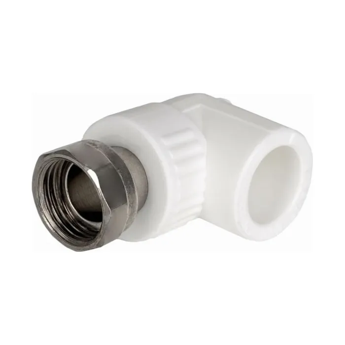 Угол нужен для быстрого монтажа элементов водоснабжения, расположенных под прямым углом друг к другу. Под ПП трубы предназначено гладкое отверстие с входным диаметром 20 мм, под сантехническое оборудование — накидная гайка. Диаметр резьбового соединения 1/2". Фитинг сделан из полипропилена. Применяется для систем с максимальной температурой рабочей жидкости 95 °C, в том числе для трубопроводов с питьевой водой