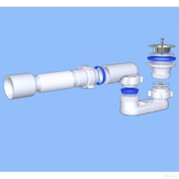 Форма сифона позволяет поддерживать хорошую пропускную способность слива сточной воды, выполняя свою главную функцию - формирование гидрозатвора для отсечения неприятных запахов из канализации. Сифон прост в установке.