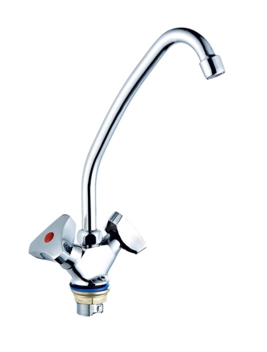 Наименование смесителя по ГОСТ 25809-96: Смеситель для умывальника и мойки двухрукояточный центральный набортный, излив с аэратором