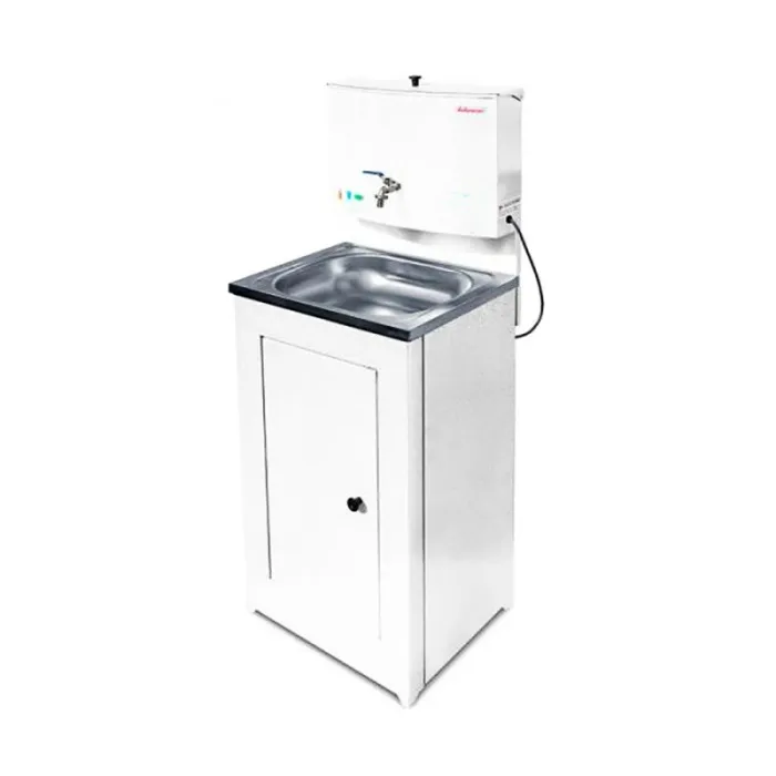 Умывальник выполнен из металлического листа 0,6 мм и окрашен порошковой краской + мойка выполненная из нержавеющей стали.