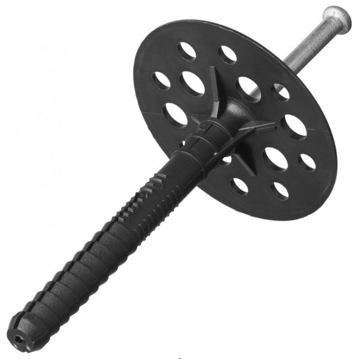 Дюбеля для теплоизоляции, так называемые парашюты или тарельчатые дюбеля – это элементы точечного крепежа утеплителя к основанию. Они идеально подходят для монтажа фасадной минеральной ваты, пенопласта и пенополистирола. Являются неотъемлемой частью системы утепления фасада здания, без них не обойтись.