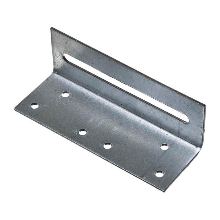 Предназначен для крепежа деревянных конструкций под углом 90 градусов. Изготовлен из оцинкованной стали, имеет отверстия под саморезы, гвозди, болты. Имеет вырез в одной из полок, который позволяет в момент монтажа и после него регулировать скрепляемые конструкции