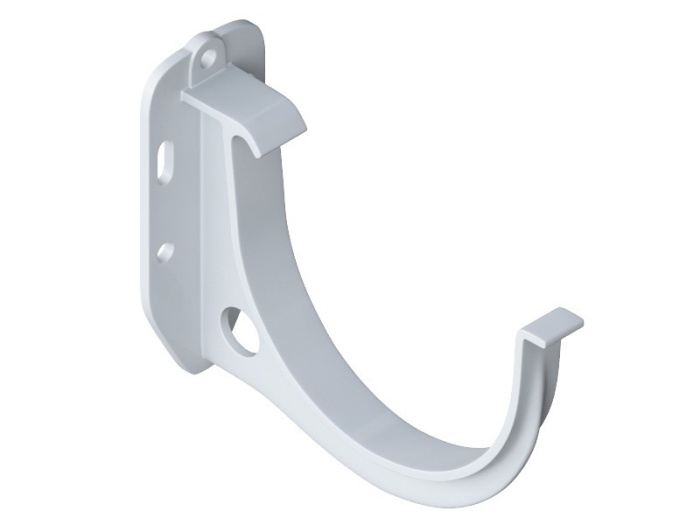Кронштейны устанавливаются на расстоянии 60см друг от друга, это позволит исключить провисание желоба (например, когда в нем собирается опавшая листва, снег и т.д). Внизу кронштейна имеется отверстие, которое может быть использовано для фиксации проводки, праздничных гирлянд и т.д.