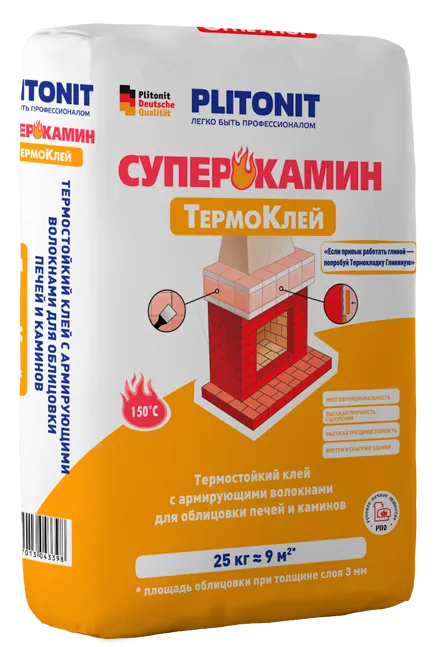 Клей для плитки печи. Предназначен для приклеивания облицовочной плитки из керамики, керамогранита, натурального и искусственного камня при отделке кирпичных поверхностей печей, каминов и бетонных оснований, подверженных температурному воздействию внутри и снаружи помещений.