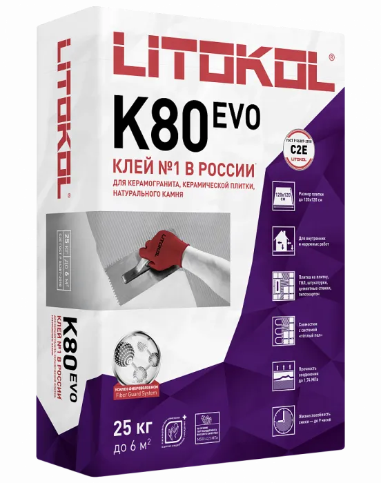—Клей для плитки,керамогранита и камня К80 LITOFLEX (C2 E) 25кг