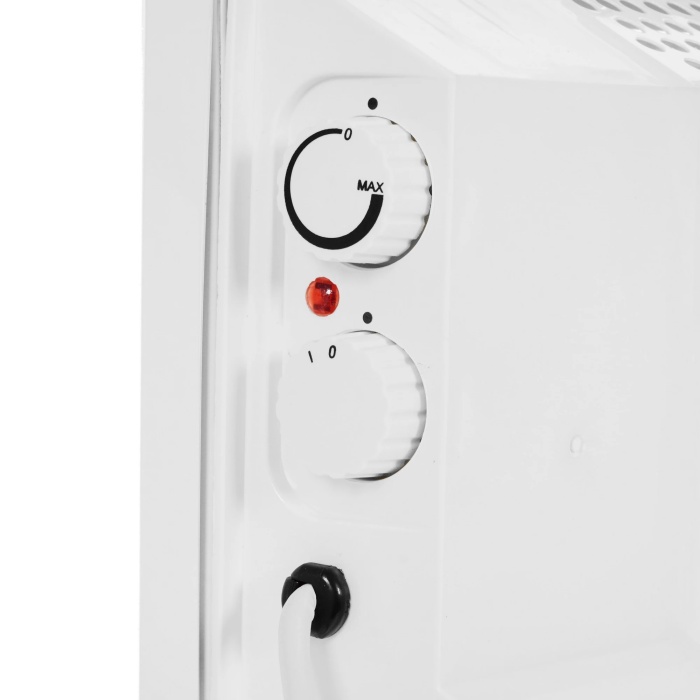 Конвектор - электрический отопительный прибор для обогрева помещений. Холодный воздух, находящийся в нижней части комнаты на уровне ног, проходит через нагревательный элемент конвектора, который находится в нижней части корпуса. Увеличиваясь в объеме в момент нагрева, теплый поток устремляется вверх через жалюзи выходной решетки и плавно распространяется по комнате в процессе естественной конвекции.