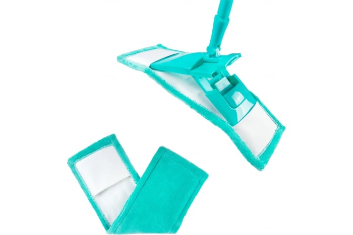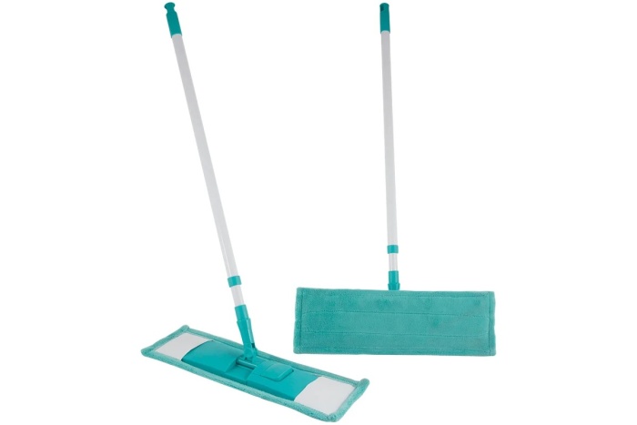 Благодаря насадке из микрофибры швабра хорошо впитывает воду и не царапает поверхность.