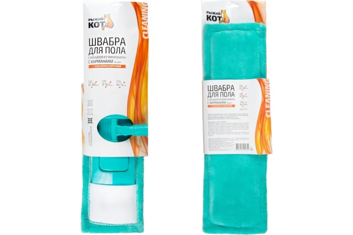 Швабра Рыжий кот MopM3 Super Promo для пола с насадкой из микрофибры 009384 предназначена для сухой и влажной уборки помещений.