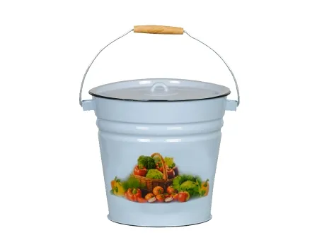 Классическое эмалированное ведро с крышкой и ручкой, снабженной деревянным держателем — такое можно встретить на многих дачах и в загородных домах. В нем удобно хранить фрукты и овощи, а при желании можно использовать вместо большой кастрюли, чтобы сварить варенье, компот или суп. Крышка предотвращает испарение жидкости, а также защищает от попадания инородных предметов в пищу (различного мусора, пыли, насекомых). Деревянный держатель на ручке добавляет удобства при переноске полного ведра.